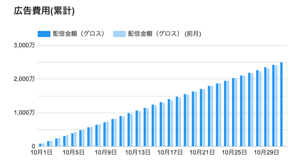 また日別、週別、月別などの推移をグラフで表示し、広告パフォーマンスのトレンドを把握できるようにします。季節性やイベントによる変動も視覚的に捉えたい場合は、期間設定と比較機能を実装すると良いでしょう。