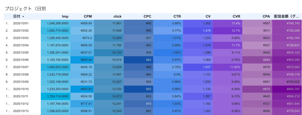 ヒートマップ機能を使えば、時間帯別や曜日別のパフォーマンスパターンも一目で把握可能です。